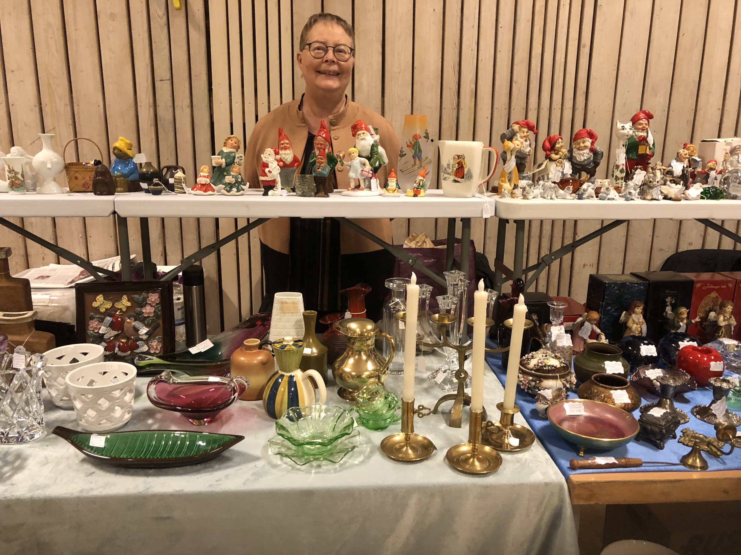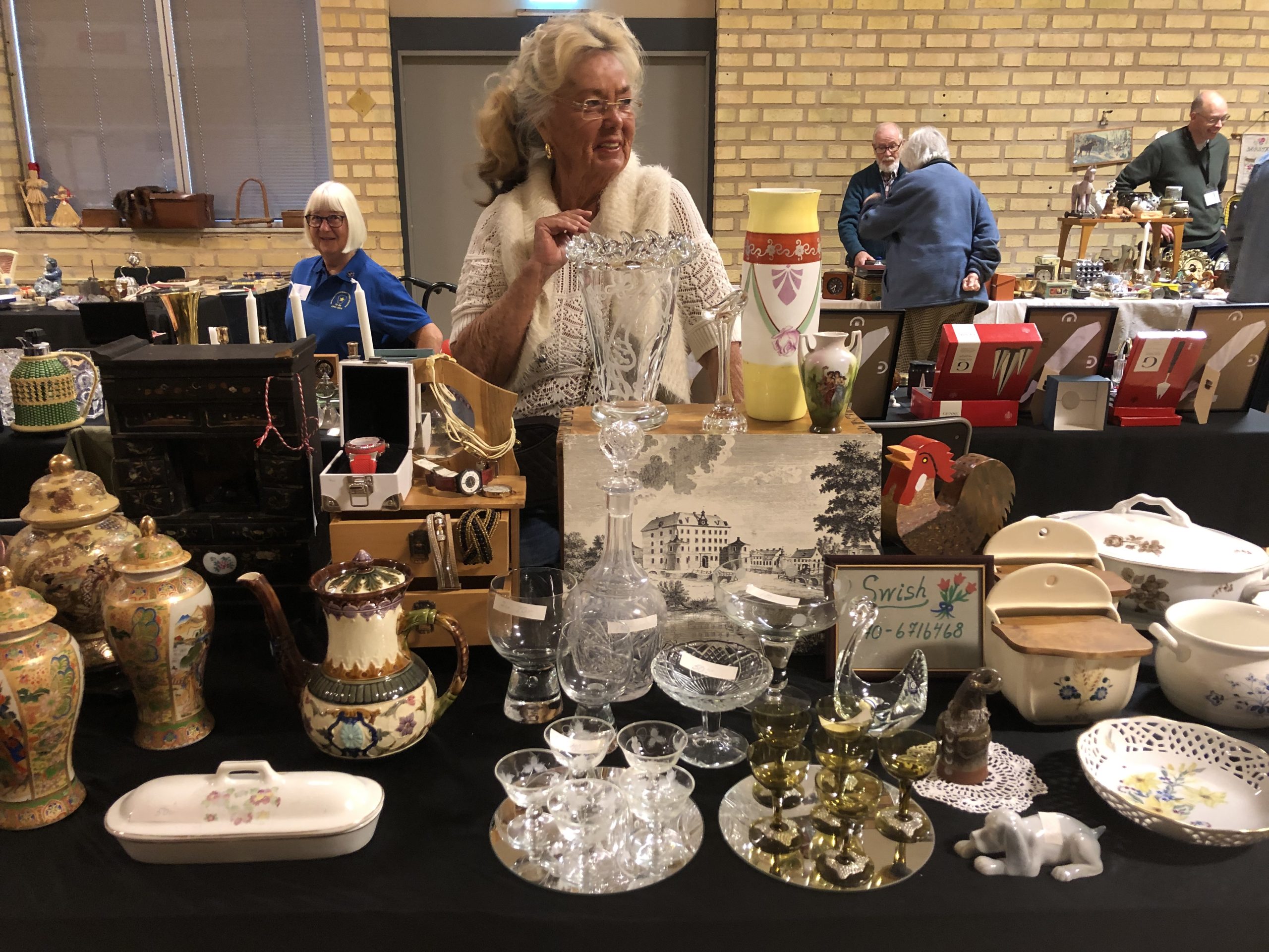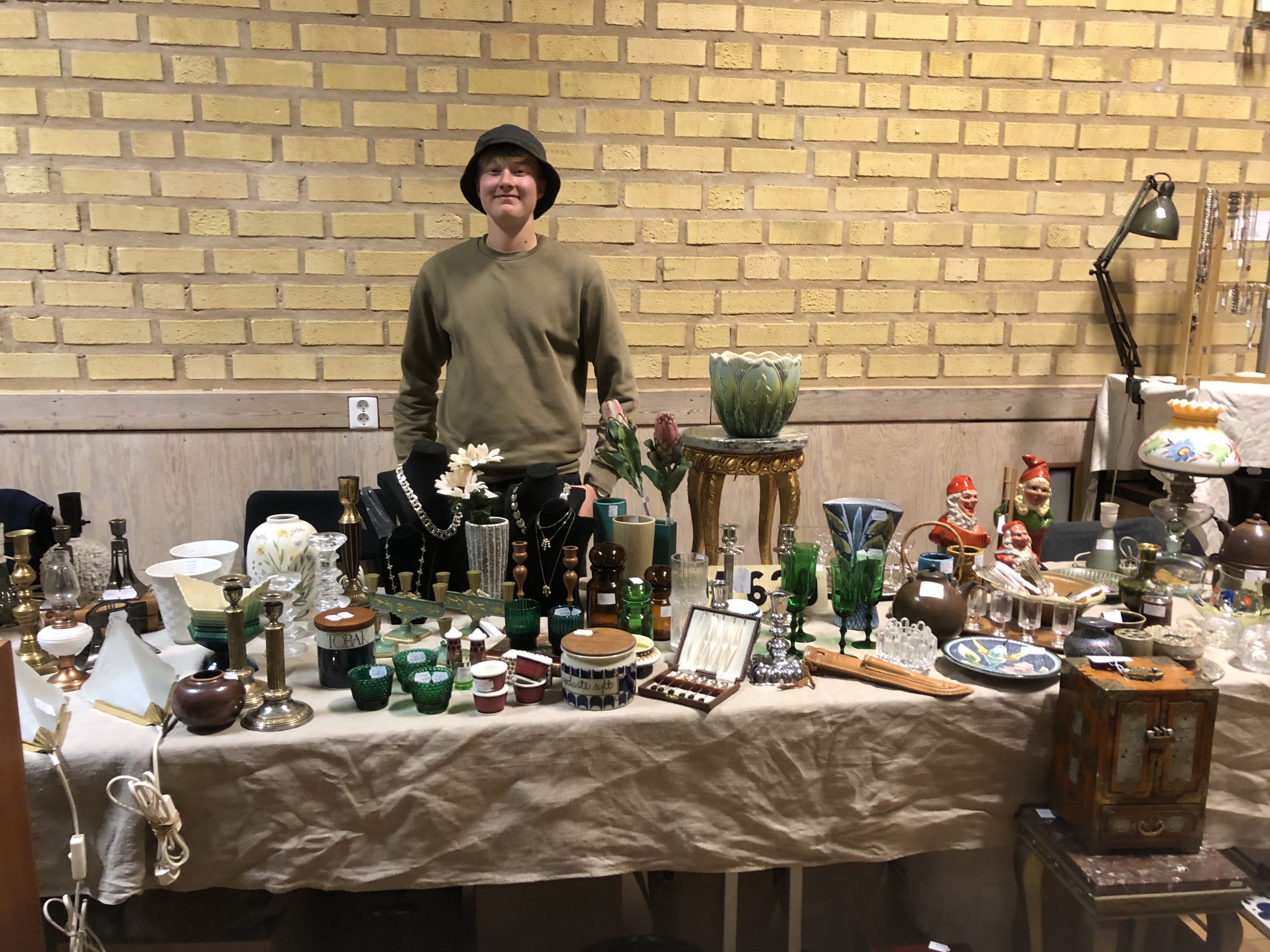 Vi hade flera nya utställare för i år och så våra egna kunniga medlemmar förstås. Kurt och Helena, Inger och Kjell, Evert, Berit, Elsa, Staffan och Margret var återigen utställare på mässan! Bland de nya utställarna märktes flera butiker, samt Sveriges yngste antikhandlare – Elis Modh från Kvänum. Besökare kunde gå runt och titta på allt som fanns. Många hittade något att handla med sig hem och kanske hittade något man letat länge efter, andra gjorde lite spontana inköp.